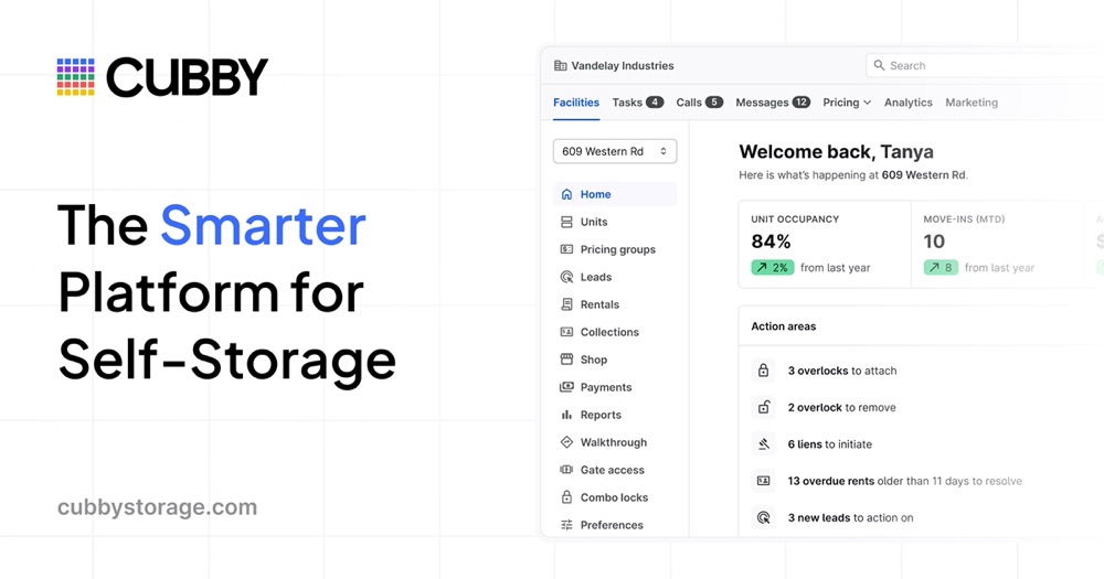 Cubby is an AI-native platform built specifically for self-storage. We provide an integrated suite of tools that includes facility management, e-commerce, revenue management, calls, and Voice AI – all in one platform. We’re helping operators replace outdated legacy systems with modern technology that lets them run more profitable, efficient businesses while delivering better experiences to their customers.