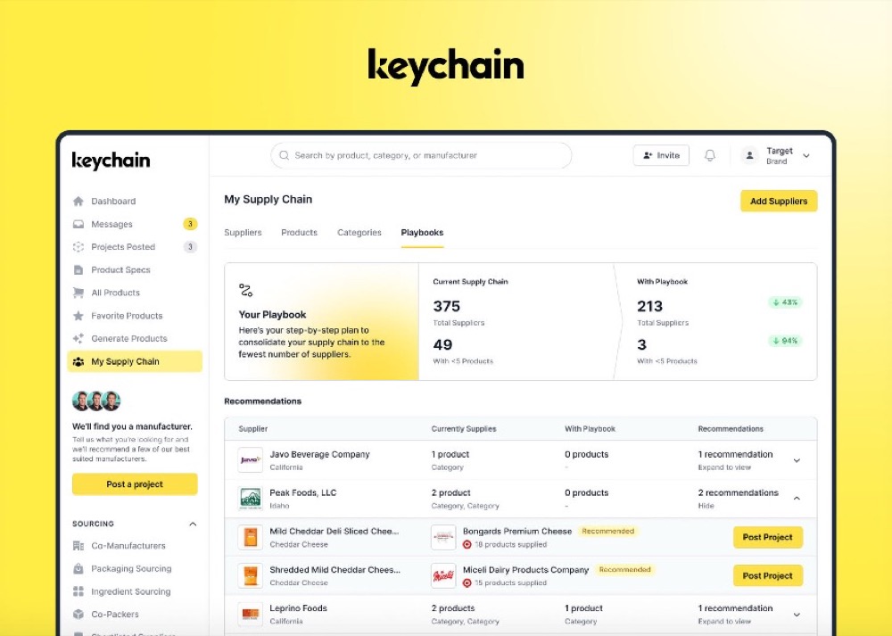 Traditionally, bringing a product to market required months–and sometimes years–of navigating trade shows, vetting manufacturers, and coordinating endless emails and calls. With this constant inconvenience, Keychain was born. The platform turns product ideas into data, and data into decisions—instantly. As consumer trends evolve faster than ever, Keychain enables CPG brands to keep pace without sacrificing quality or cost.