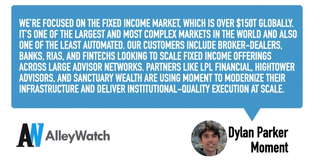 We’re focused on the fixed income market, which is over $150T globally. It’s one of the largest and most complex markets in the world and also one of the least automated. Our customers include broker-dealers, banks, RIAs, and fintechs looking to scale fixed income offerings across large advisor networks. Partners like LPL Financial, Hightower Advisors, and Sanctuary Wealth are using Moment to modernize their infrastructure and deliver institutional-quality execution at scale.