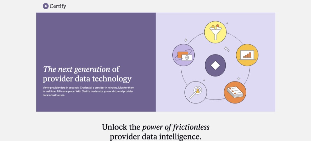 Description: New York-based Certify is an API-driven platform automating all stages of provider network management: licensing, enrollment, credentialing, monitoring. Founded by Anshul Rathi, Mitchell Gorodokin, and Shrishti Mamidi in 2021, Certify has now raised a total of $59.1M in total equity funding and is backed by General Catalyst, Hustle Fund, Transformation Capital, Max Ventures, and Upfront Ventures.