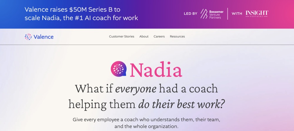 Description: Valence provides an AI coach for employee development and organizational performance. Founded by Levi Goertz and Parker Mitchell in 2017, Valence has now raised a total of $75.1M in total equity funding and is backed by Insight Partners, Bessemer Venture Partners, Everywhere Ventures, and M3 Lending.