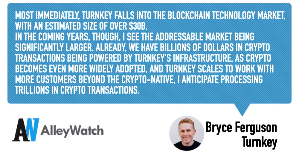 Most immediately, Turnkey falls into the blockchain technology market, with an estimated size of over $30B .
